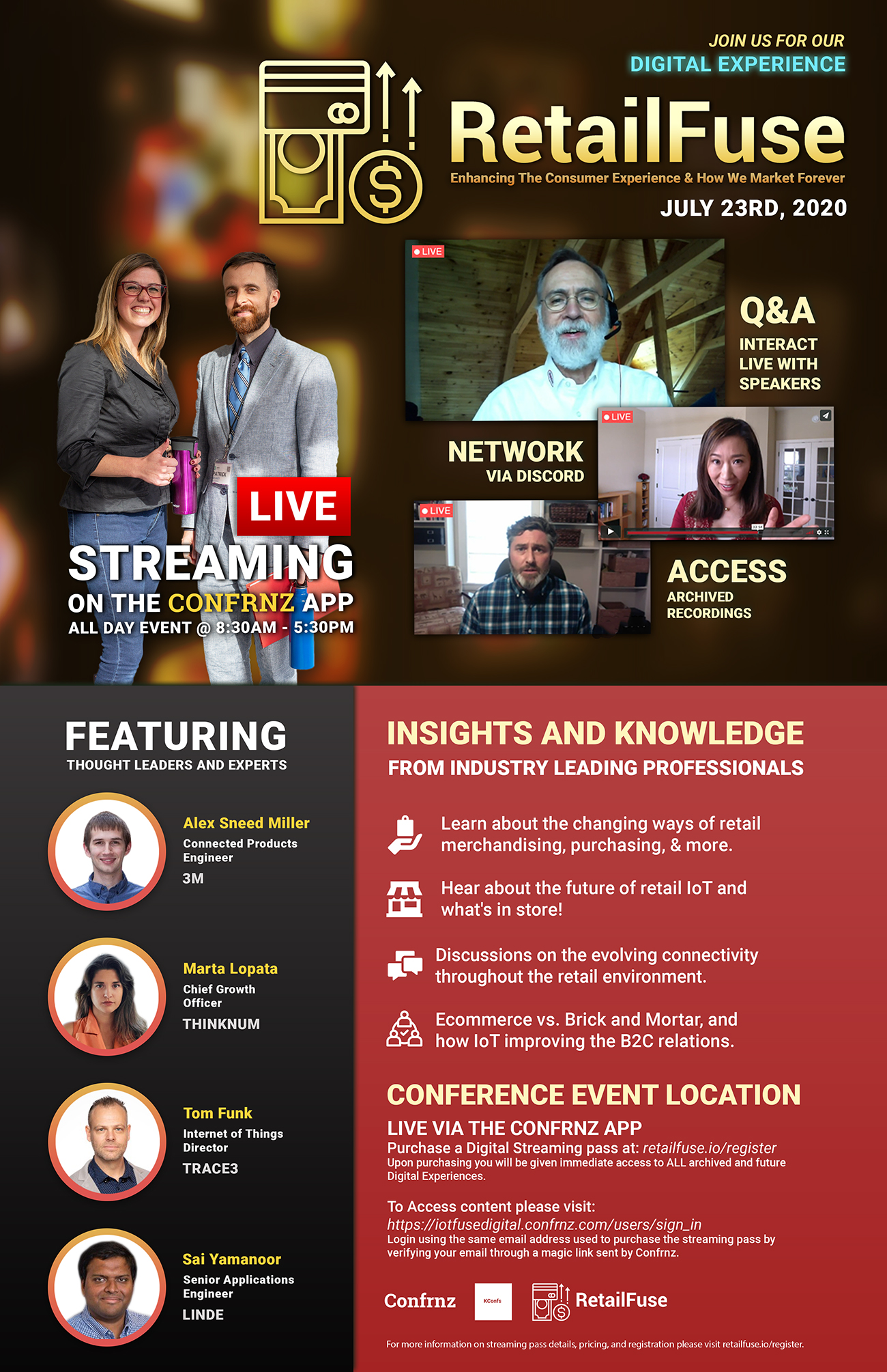 Using this platform, I was in charge of registering attendee's, distributing discount codes, and exporting attendee lists used to print out tickets. In addition to this, graphics were made for each conference which can be seen below.